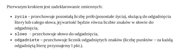 odgadnięcia będą dobierane losowo. Spróbujmy zdefiniować dodatkową funkcję,