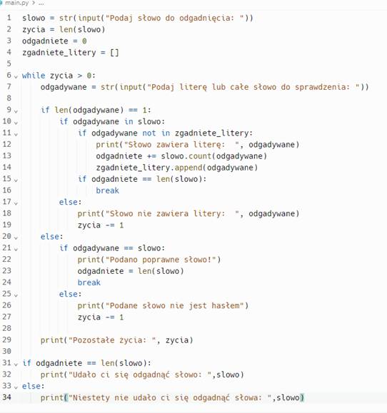 gra kończy się, gdy gracz zgadnie